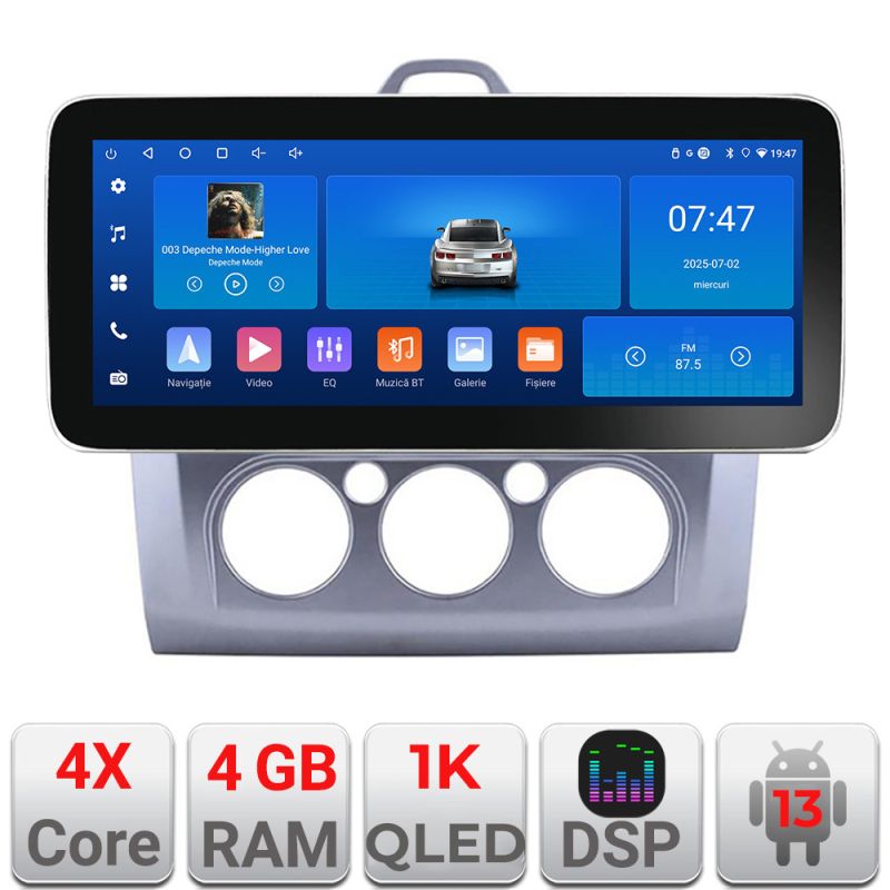 Navigatie Ford Focus clima manuala K-140-manual Edotec 4+64 12.3 inch Incell 1K android Wifi 5Ghz gps internet 32