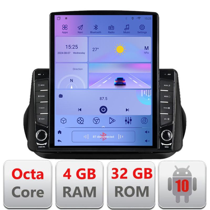 Android 10 ∙ Octa Core ∙ 4GB RAM+32GB ROM ∙ 4G și WiFi ∙ GPS ∙ intrare de cameră 360° ∙ intrare USB cameră DVR ∙ ecran uriaș vertical de 9.7”