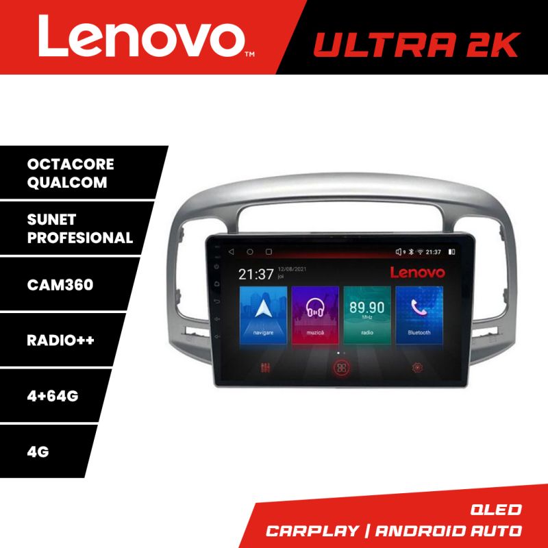 Navigatie Hyundai Accent 2006-2012 Lenovo Kit-ACCENT 8 core QLED Qualcomm 4+64 360 Android Waze USB Navigatie Internet Youtube Radio