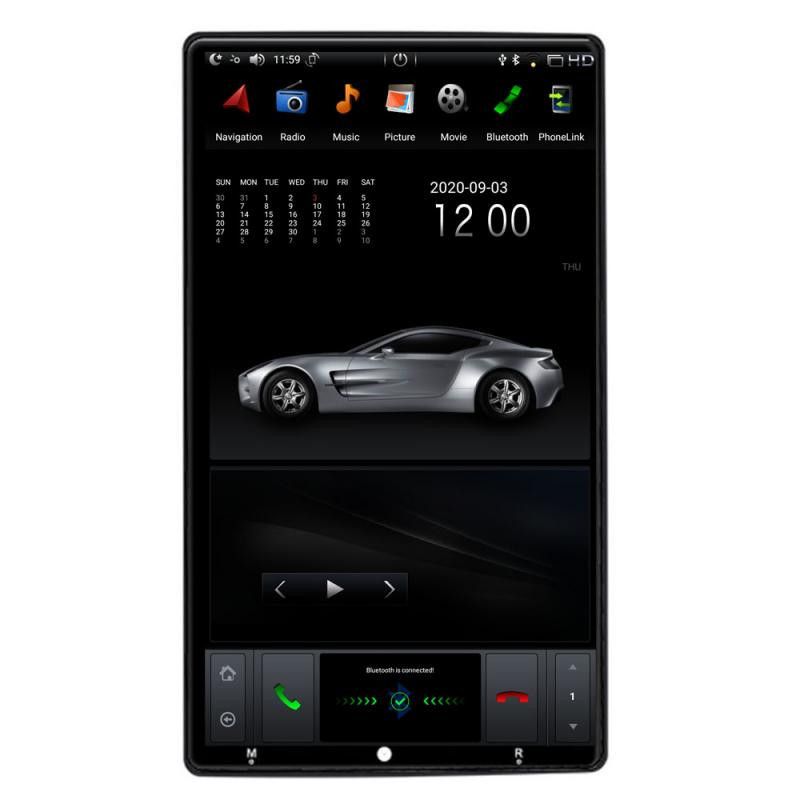 Sistemul multimedia de navigatie cu ecran urias tip Tesla are sistem o operare Android 9, procesor SixCore, 4GB RAM si 64GB ROM